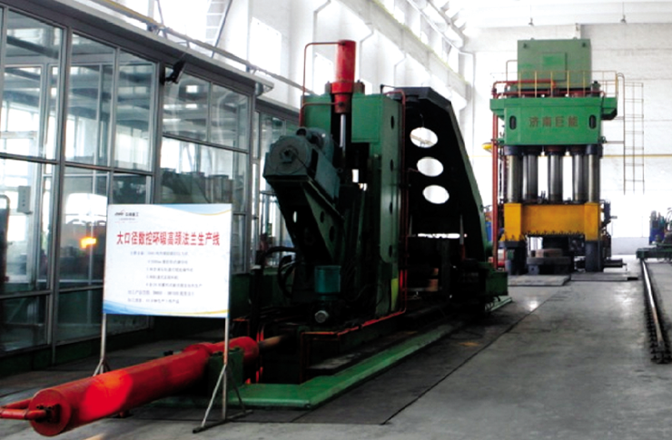 The company has a variety of advanced equipment about 1,400 sets/sets, and according to the national laboratory standards to establish a sound production testing laboratory. The pipe fitting workshop includes 5000T four-column hydraulic press, medium frequency push machine (DN1400), elbow cold forming machine (DN700), three-way cold extrusion machine (DN500) and corresponding processing equipment, environmental protection pickling facilities. Flange workshop is equipped with 2 meters CNC ring forging machine and matching gas forging furnace, loading and reclaiming machine integrated flange ring forging production line, 750KG, 1000KG, 2000KG air hammer and 1250mm vertical ring forging machine as the main body of free forging production line and equipped with corresponding gold processing equipment. Pressure vessel workshop has 8m*9m*30m large bench heat treatment furnace, supporting machining center, CNC lathes, all kinds of welding equipment, 5m CNC vertical car and 300 tons of lifting crane and other large equipment. The Linjiang terminal near the company is a special heavy cargo terminal specially designed by the municipal special department for the development of our company. It can directly ship large equipment with a diameter of 9 meters, a length of 80 meters and a weight of 1000 tons.